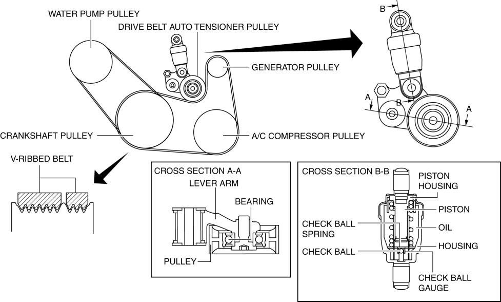 A V-ribbed belt has been adopted for the drive belt.