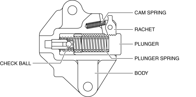 The chain tensioner constantly maintains the timing chain tension and the timing chain operation is stabilized.