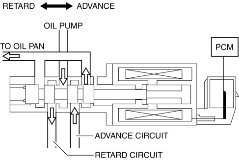 • Performs the exhaust variable valve timing control with a maximum cam advance request.