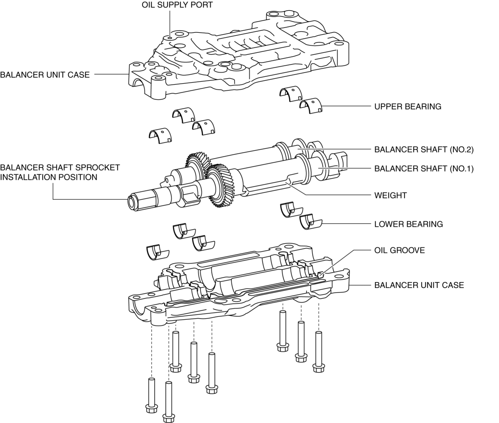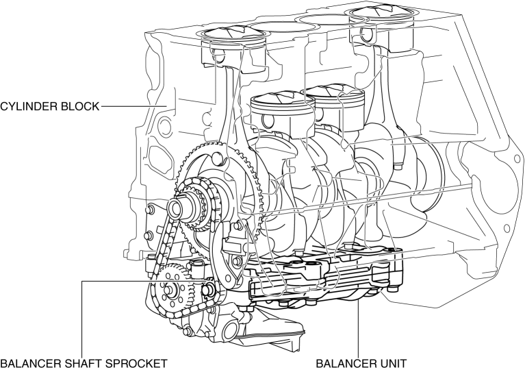 The balancer unit eliminates the secondary inertia force occurring in the in-line 4-cylinder engine which reduces engine vibration. As a result, booming noise (low frequency noise which causes the feeling of ear compression) is suppressed and a high-level quietness has been realized.