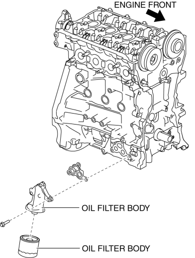 The oil filter is installed on the right side surface of the cylinder block. A spin-on type (full-flow type) oil filter has been adopted.
