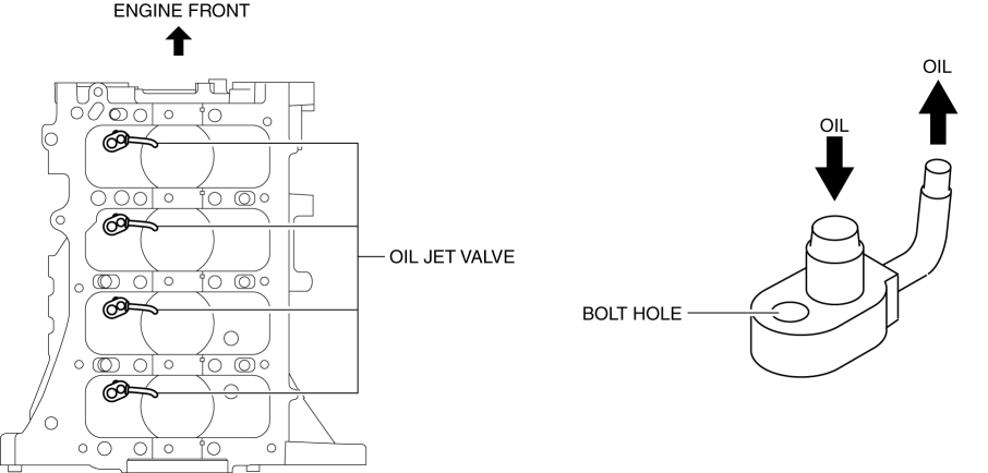 The oil jet valve injects engine oil on the back of the piston to cool the piston.