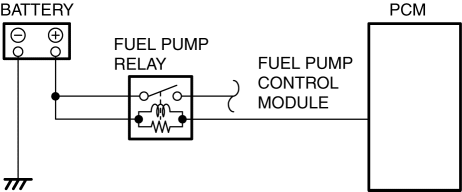 The contact point is on when the battery voltage is supplied to the coil based on the signal from the PCM, and the battery voltage is supplied to the fuel pump control module.