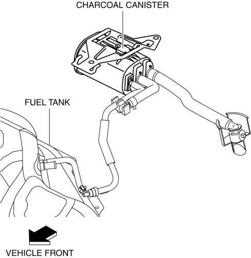 The charcoal canister is installed near the fuel tank.