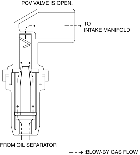 When the valve is pulled by the intake manifold vacuum, blow-by gas flows to the intake manifold.
