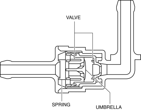 The valve moves in response to the difference in air pressure between the fuel tank side and the atmospheric side, thereby changing the path of airflow.