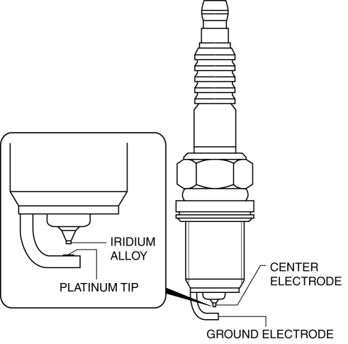 Iridium on the center electrode and platinum on the ground electrode are used (iridium spark plug).