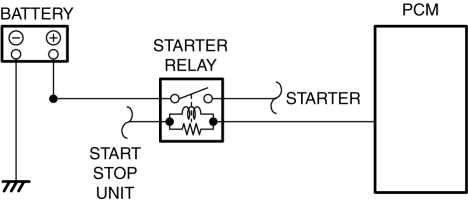 The contact point is on when the voltage is supplied to the coil based on the signal from the start stop unit, and the battery voltage is supplied to the starter.