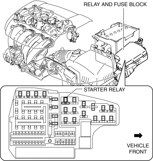 The starter relay is installed to the relay and fuse block.
