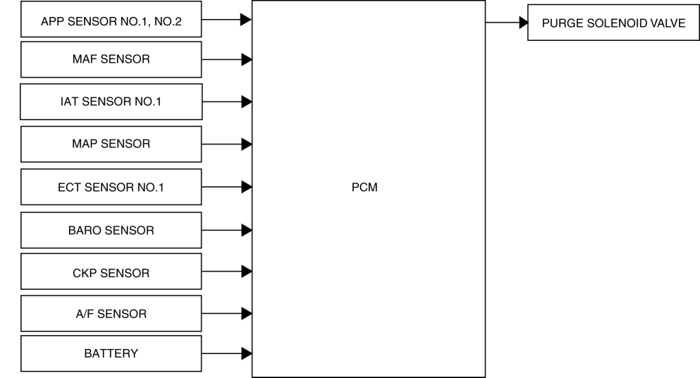 The PCM drives the purge solenoid valve based on the signal from each control part.