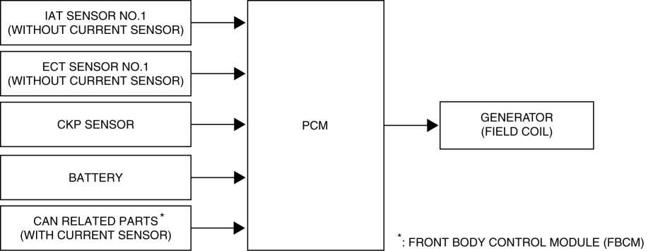 The PCM determines the engine operation and electrical load conditions based on the input signals from each control part and controls the energization time of the generator field coils.