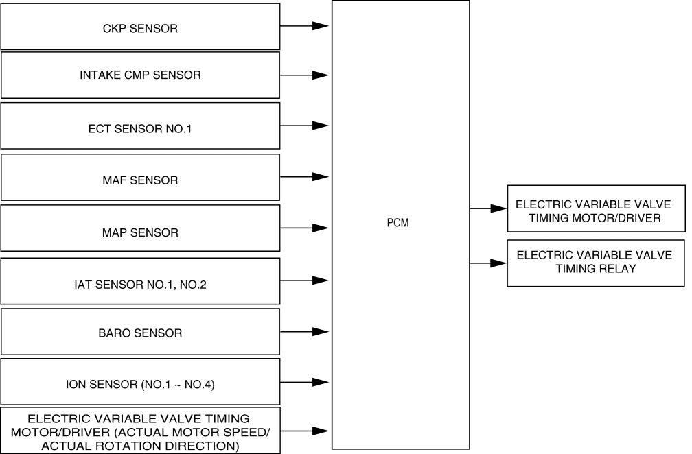 • If there is any malfunction in the electric variable valve timing driver, the intake valve timing is held at the maximum retard position to stabilize the engine speed.