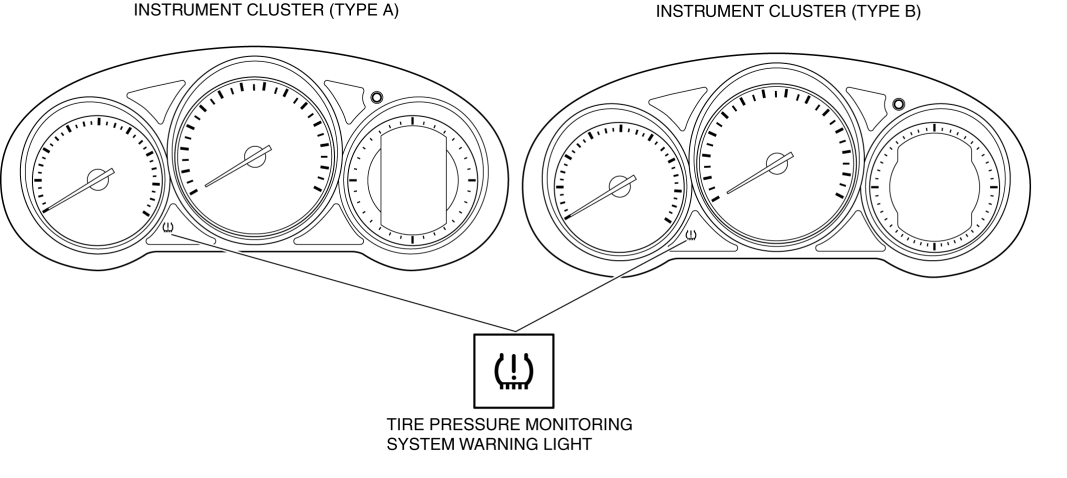 The tire pressure monitoring system warning light notifies the driver that it was determined that a tire pressure has decreased below the specified value based on the initialization.