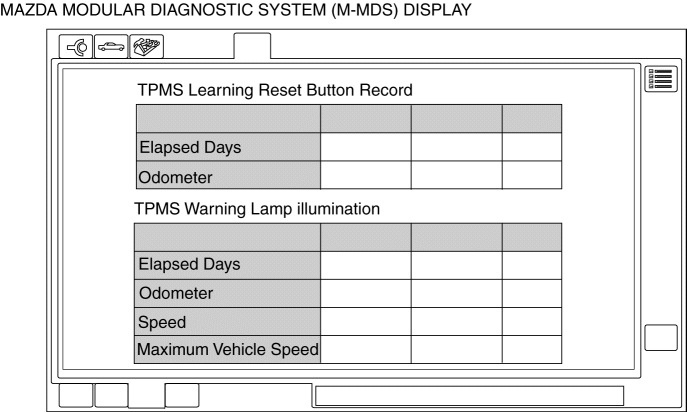 The DSC HU/CM stores the operation records and the Mazda Modular Diagnostic System (M-MDS) reads out the operation records and indicates them as shown in the figure below: