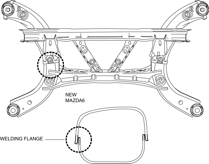 Welding flanges were removed from the rear crossmember to enhance the coupling rigidity of the welded sections and reduce the weight.