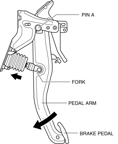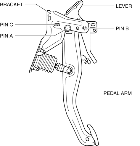 If the pedal rotates further, pin A separates from the bracket (notch), and the pedal is freed.