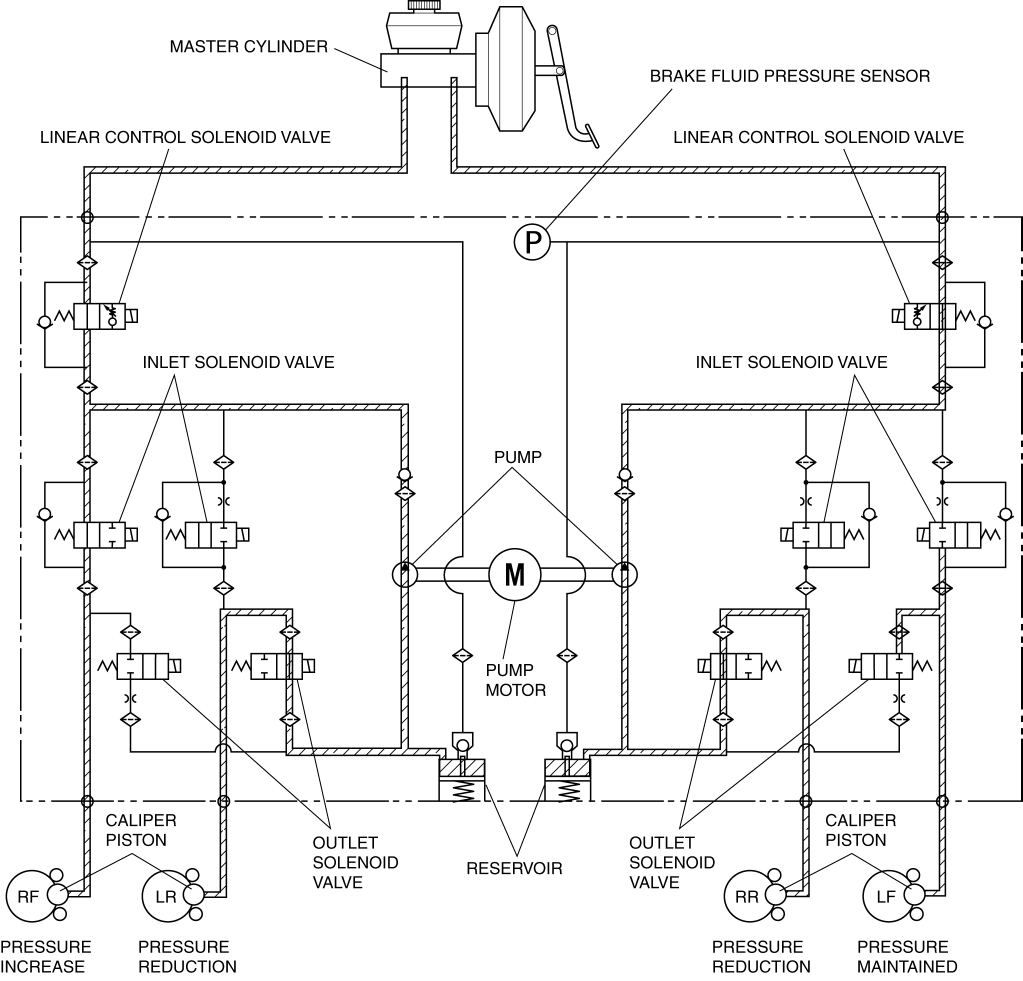 • Controls brake fluid pressure when braking to maintain directional stability, ensure steerability, and reduce stopping distance.
