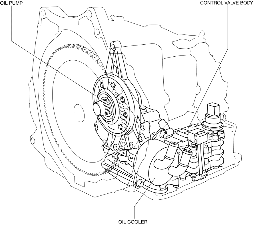The hydraulic control mechanism consists of an oil cooler which maintains the hydraulic pressure at the optimum temperature, a control valve body and each shift valve which perform adjustment and circuit switching of the hydraulic pressure based on the control content calculated by the TCM, and the oil pump which generates the hydraulic pressure of each clutch and brake.