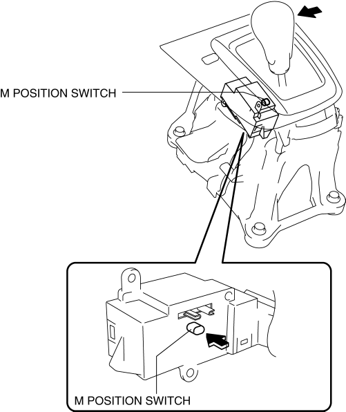 By opening and closing the M position switch contact point, the TCM detects that the selector lever is in the M position.