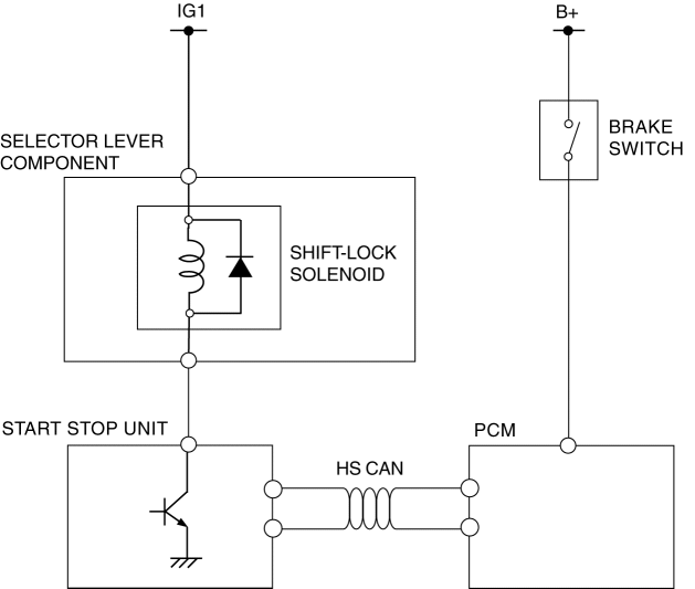 At this time, the shift-lock solenoid is energized because there is energization to the shift-lock solenoid.