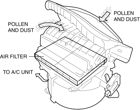 The air filter removes pollen and dust in the intake air and purifies air flowing into the cabin.