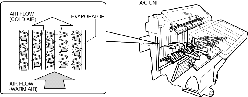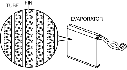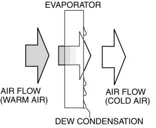 The evaporator vaporizes the atomized refrigerant flowing internally, and the air passing through the evaporator is cooled by the release of latent heat. The moisture in the air is condensed at this time and dehumidified air is blown into the cabin.