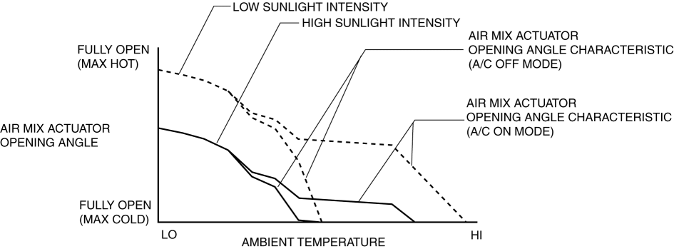 1. The climate control unit determines the airflow temperature based on the temperature control dial operation and signals from each sensor which changes according to the vehicle environment.