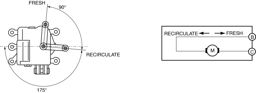 2. When the air intake actuator moves to FRESH or REC, the motor locks.