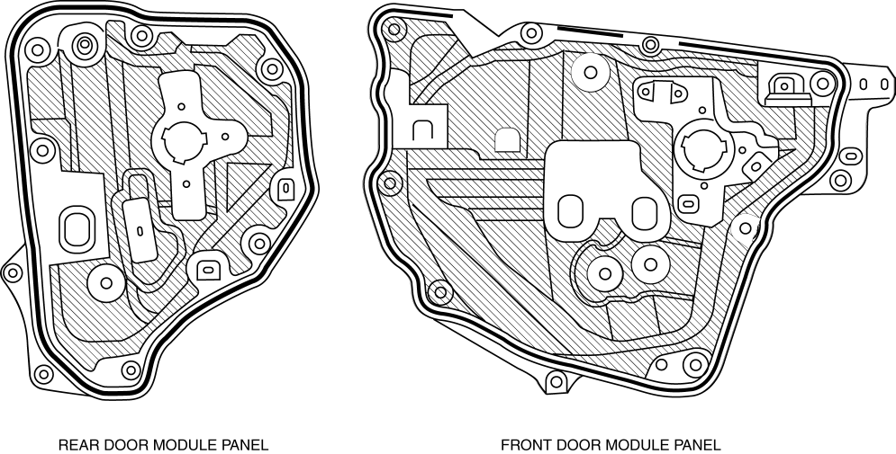 The door module panels include parts integrated inside the doors and those belonging to the doors.