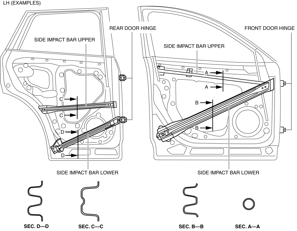 Inward penetration of the doors during a side-impact collision is prevented by directly connecting the lower side-impact bars of the rear doors directly to the rear door hinge using bolts and positioning them such that they overlap the side sill.