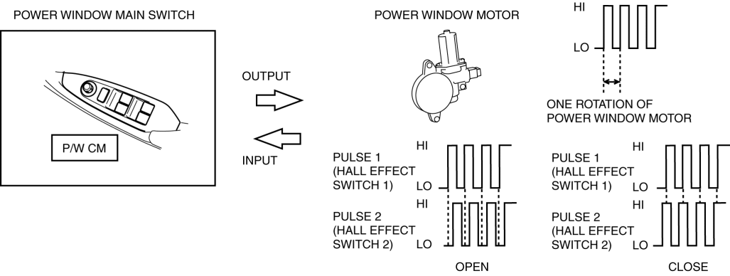 P/W CM detected pulse 2 error (for door glass direction detection) stop malfunction
