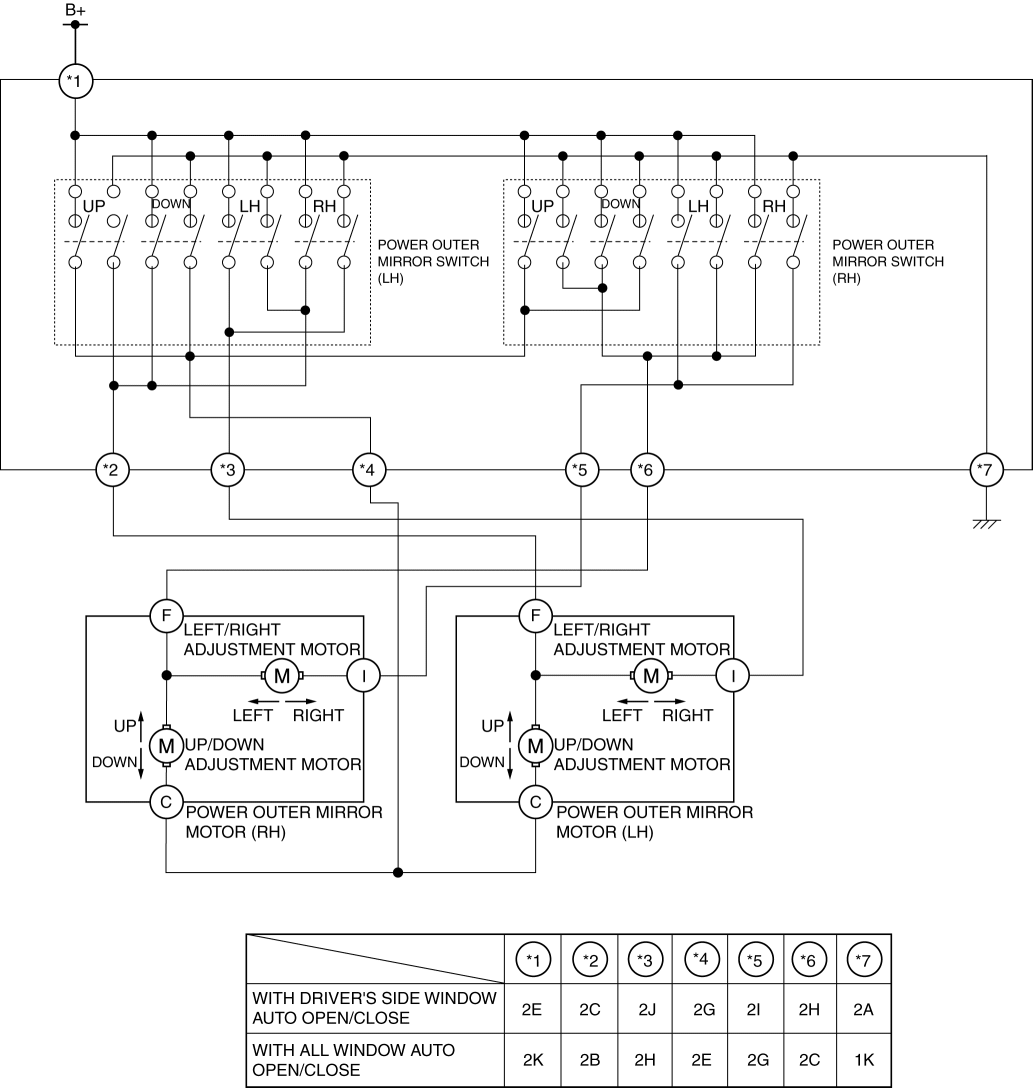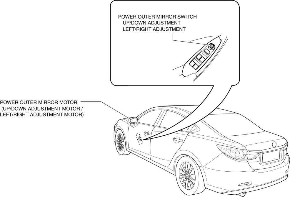 Outer mirror glass can be adjusted up/down and left/right electrically.