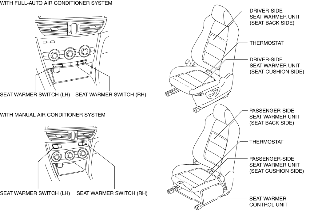 1. The climate control unit determines (1) the average increase temperature of the seat warmer unit by operating the seat warmer switch (driver-side).