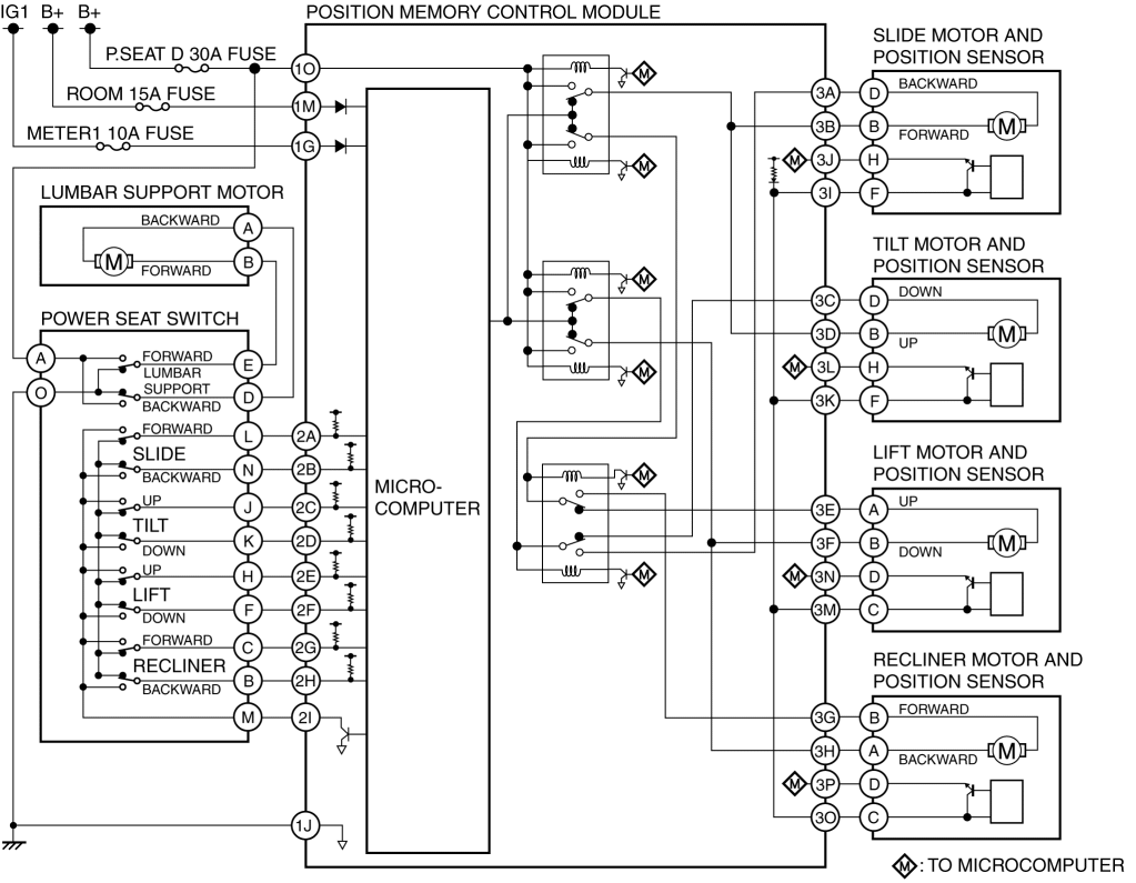When the position memory control module receives the lift switch on signal, power is supplied to the lift motor and position sensor.