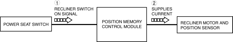 When the position memory control module receives the recliner switch on signal, power is supplied to the recliner motor and position sensor.