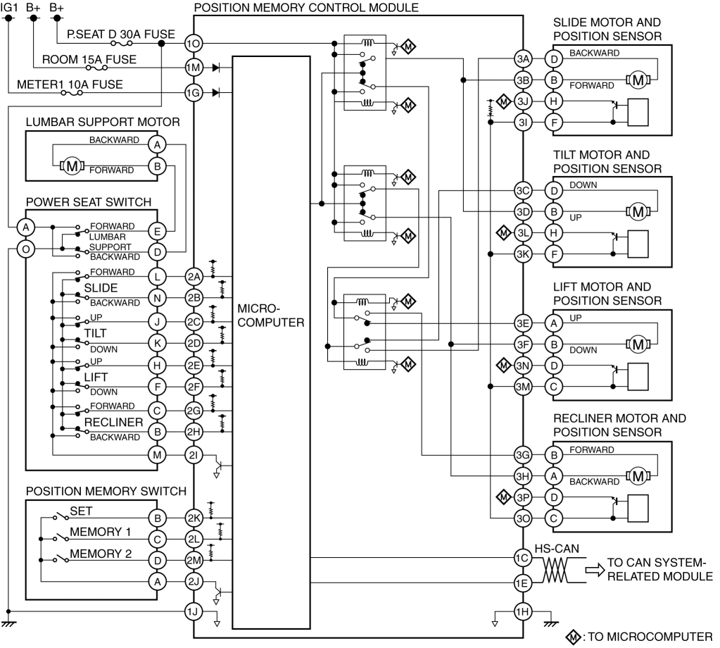 • If there is a malfunction in the tilt position sensor, inhibits all memory seat positioning.