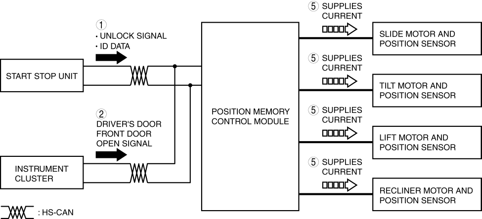 • If there is a malfunction in the slide position sensor, inhibits all memory seat positioning.