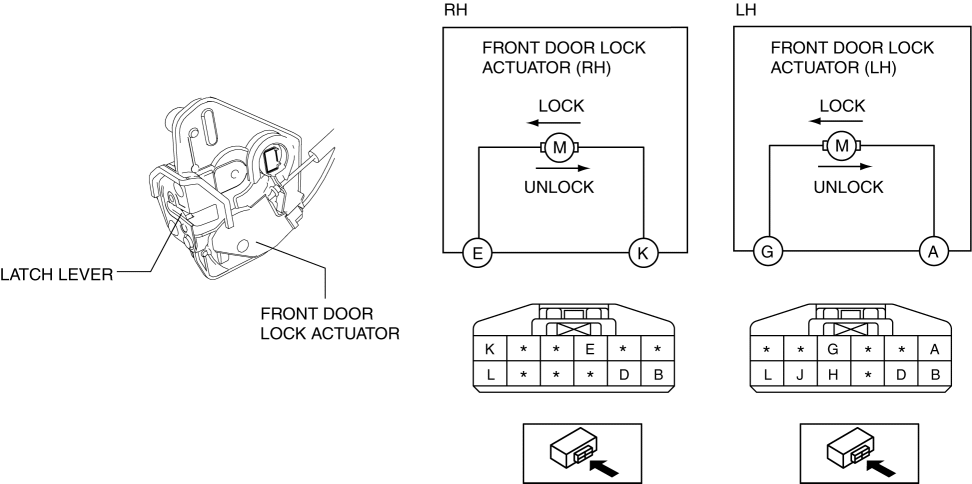 Performs lock/unlock switching of the front doors electrically based on the signal from the rear body control module (RBCM).