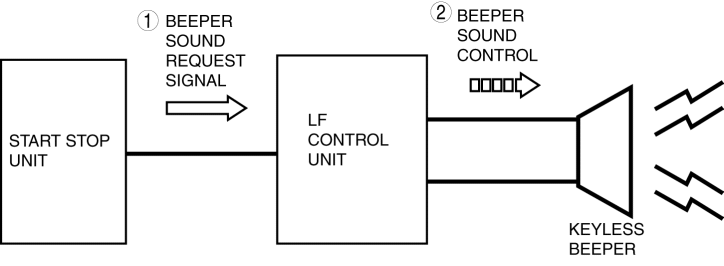 The LF control unit controls the keyless beeper sound based on the signal from the start stop unit.