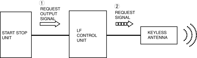 The LF control unit sends the request signal from the keyless antenna based on the signal from the start stop unit.