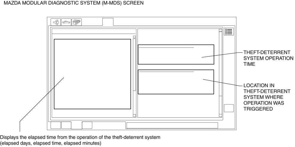 The theft-deterrent system operation record is stored by the rear body control module (RBCM) and displayed using the Mazda Modular Diagnostic System (M-MDS).