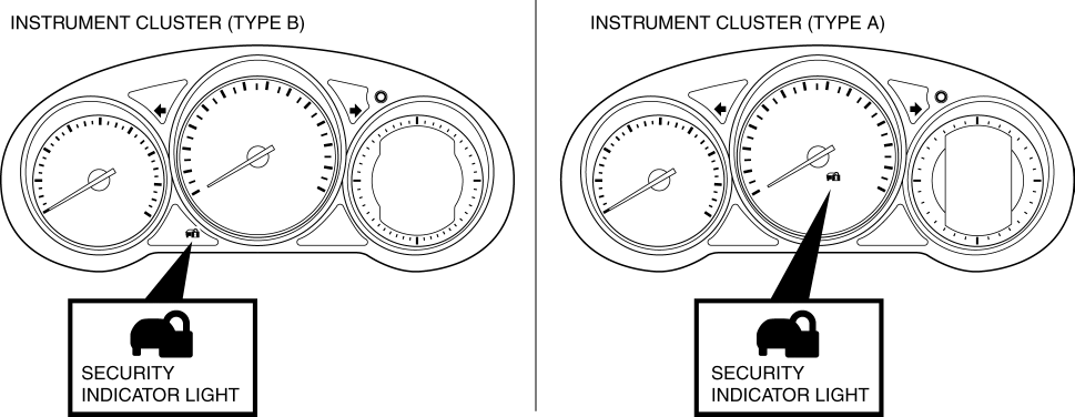 If a malfunction is detected in the immobilizer system, the DTC can be verified by the flashing pattern of the security indicator light.