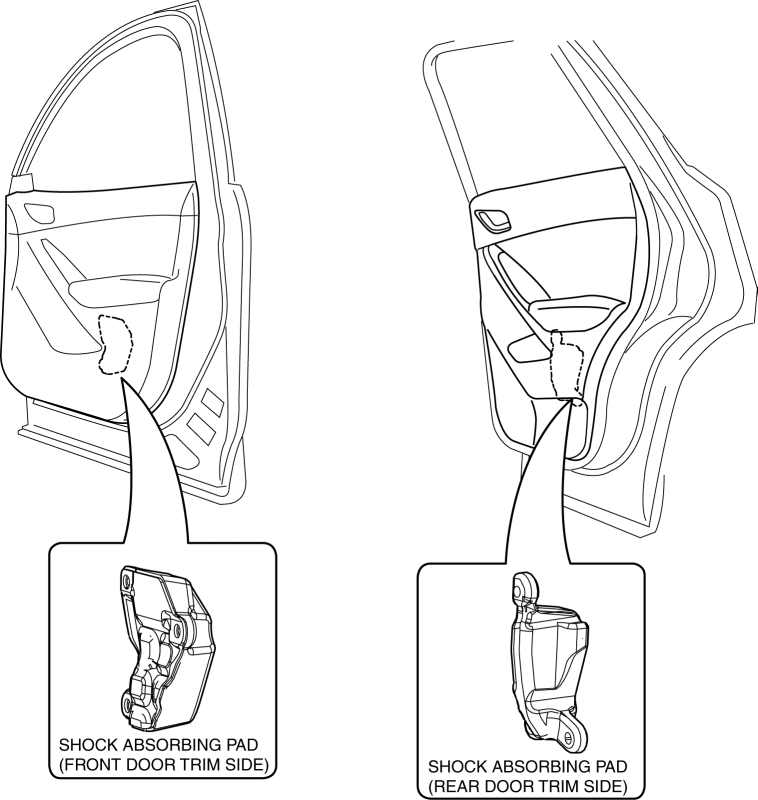 Shock absorbing pads are installed inside the front and rear door trims.