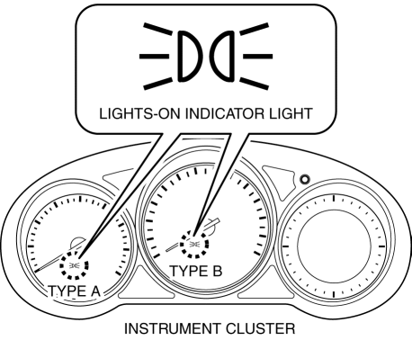 4. When the instrument cluster receives the TNS illumination, or headlight LO illumination signal, it illuminates the lights-on indicator light.