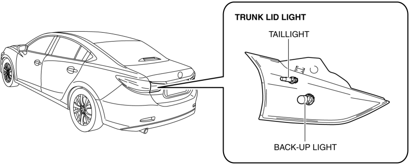 The back-up lights are illuminated in conjunction with the selector lever (ATX)/shift lever (MTX) operation.