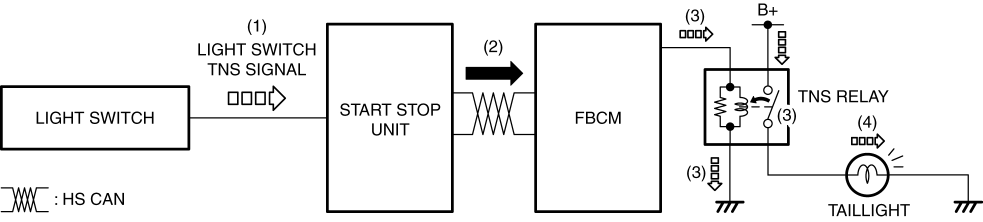 1. When the light switch is operated to the TNS position, a light switch TNS signal is input to the start stop unit.