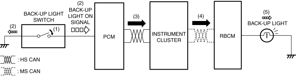 2. When the back-up light switch is turned on, a back-up light on signal is input to the PCM.