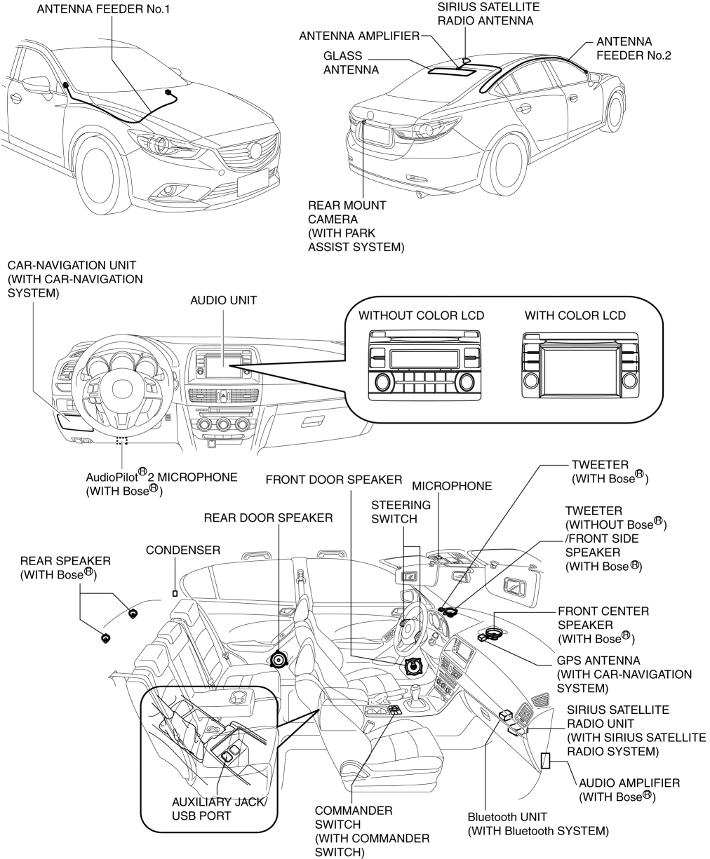 A SIRIUS satellite radio antenna has been adopted. (with SIRIUS satellite radio system)
