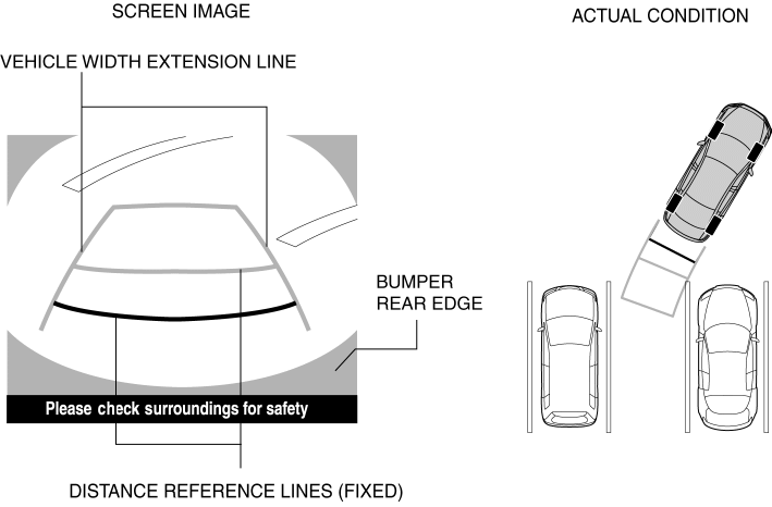 • Shows distance reference line 0.5 m from the rear of the rear bumper.