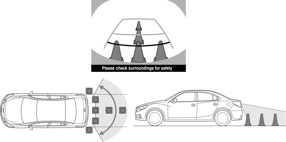 • Shows distance reference line 1.0 m from the rear of the rear bumper.
